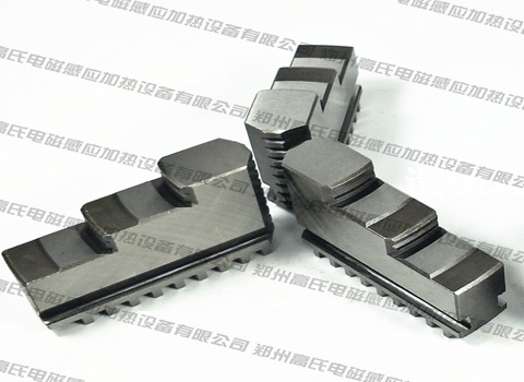 三爪卡盤是專門用于夾緊工件和定位機(jī)床附件的,而卡爪是組成三爪卡盤較為重要的部件之一。在加工零件時,如果用三爪卡盤,工件的精度就會得到較高的提升。所以三爪卡盤卡爪的加工質(zhì)量直接影響到工件的加工質(zhì)量。由于技術(shù)要求,制作卡爪的材料選擇用45鋼,但是在熱處理時,要求卡爪在尺寸相對不大的范圍內(nèi),有多種硬度。所以我們采用高頻加熱設(shè)備對其進(jìn)行淬火處理。在制作卡爪時,需要對厚度25mm的鋼板進(jìn)行熱軋鍛造成型,然后在850℃左右的溫度下進(jìn)行加熱透燒,隨后放在空氣中冷卻。這時的卡爪需要再次進(jìn)行精加工處理,等到設(shè)備內(nèi)的溫度達(dá)到820℃時,對卡爪進(jìn)行淬火處理,保溫12S后放入水中冷卻即可。